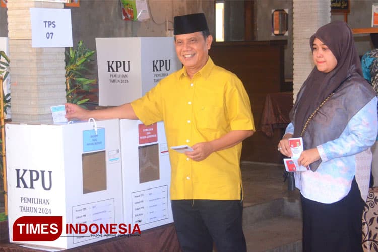 TIMES Jambi/Calon Bupati Malang nomor urut 2, Gunawan HS, saat memberikan hak suara dalam pilkada 2024, di TPS 07, Desa Gondanglegi Wetan, Kabupaten Malang, Kamis 27/11/2024. (FOTO: Adhitya Hendra/TIMES Indonesia)