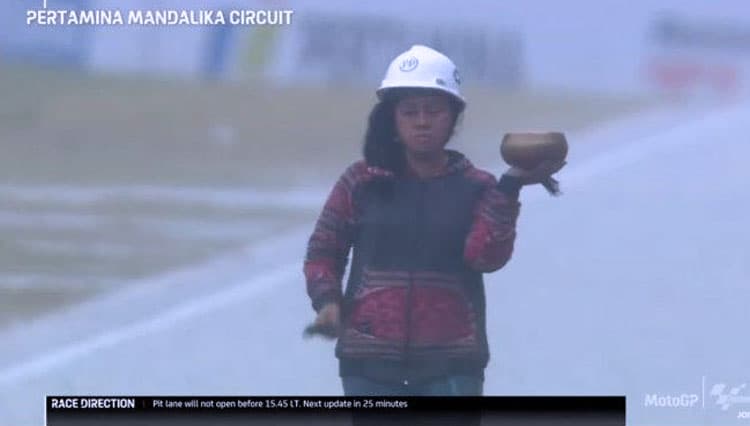 TIMES Jambi/Raden Rara Isti Wulandari, sang pawang hujan saat Sirkuit Mandalika, Lombok Tengah, NTB, Minggu (20/3/2022) (FOTO: t-2.tstatic.net)